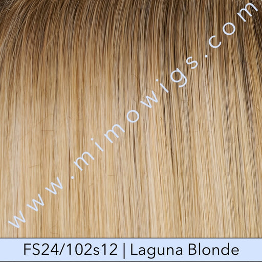 Estetica-DesignsMONOFILAMENTLACE FRONT ••• Medium Length Blunt Cut Lob COLOUR SHOWN: SILVERSUNRT8 & Caramel Kiss RT4 BANG - 13"SIDE - 9.5"CROWN - 14"NAP...